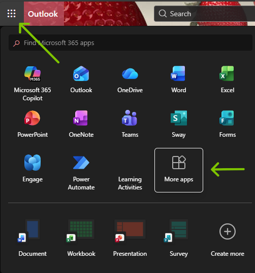 Click the grid icon in the top left corner of the screen then click More apps.