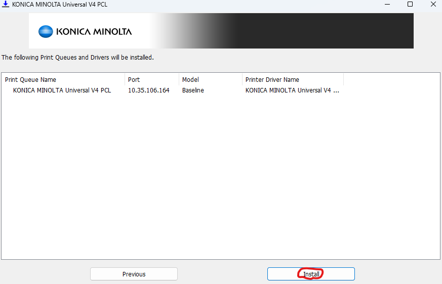 The North printer IP is 140.226.99.12; South Printer is 10.35.106.164; you can add both by adding another to the list in step 7 and inputting the IP address there. Once you enter the IP, you'll want to select "Next", then "Install" and this should add the printer to your devices