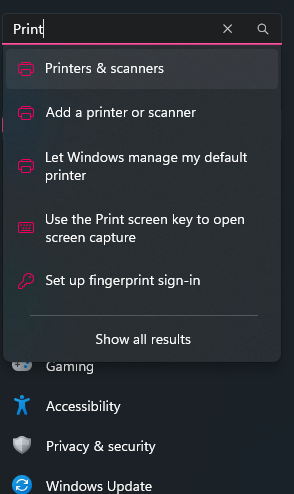 - Once the process is complete, you'll want to open your Windows settings and search "Scanners & Printers"
