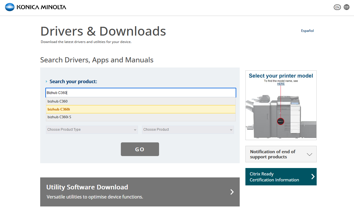 - Go to the following site: https://www.btapac.konicaminolta.com/index.html